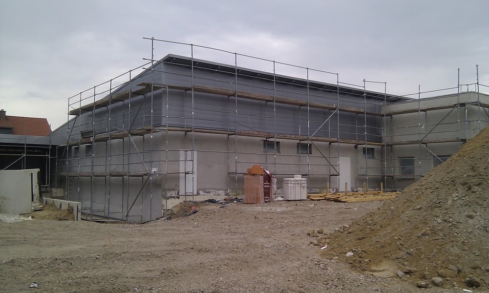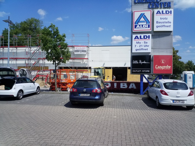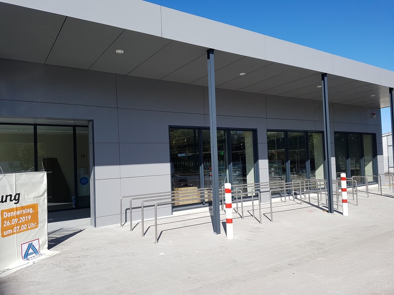 Aldi in Güthersloh 1950 qm Trapezbleche als Tragschale und 520 qm Fassade aus Aluverbundplatten