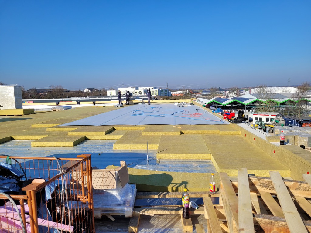 REWE-Markt in Vechelde 4560 qm Trapezbleche als Tragschale und Folienabdichtung